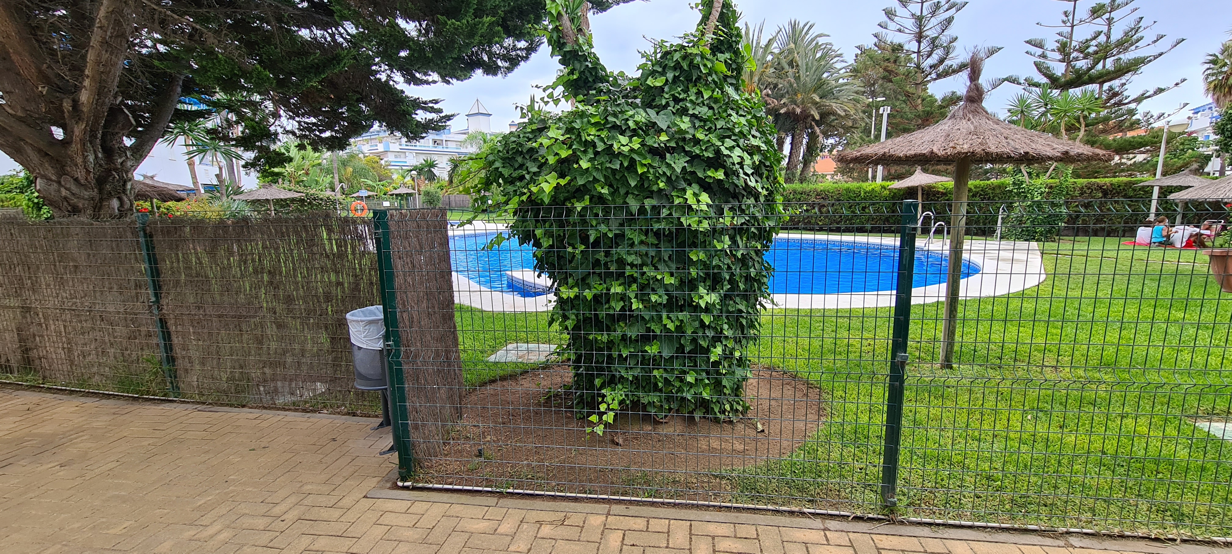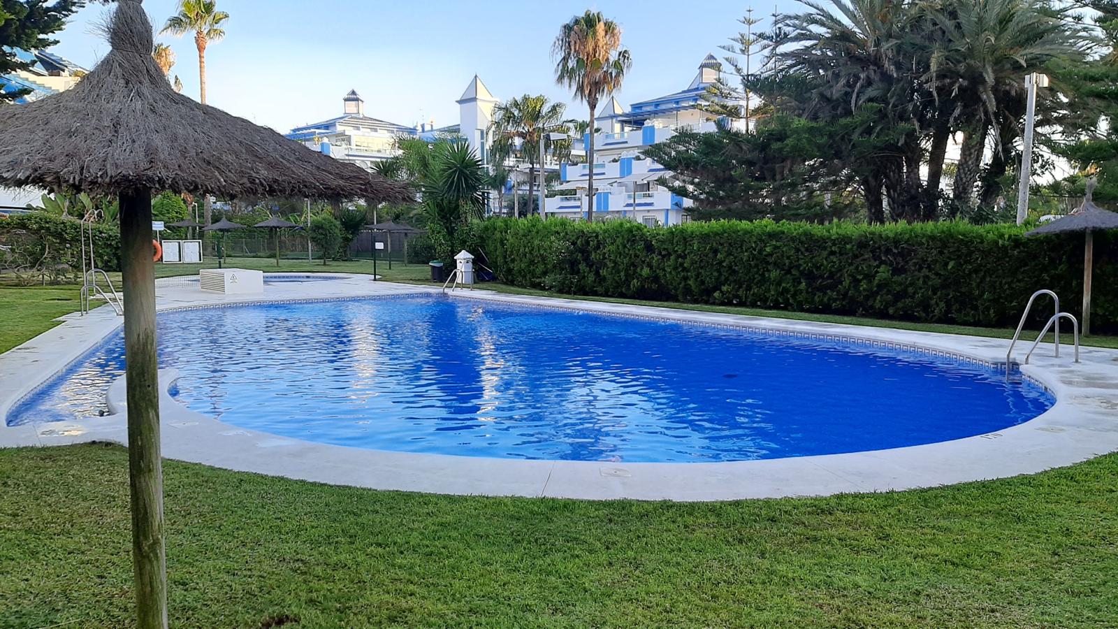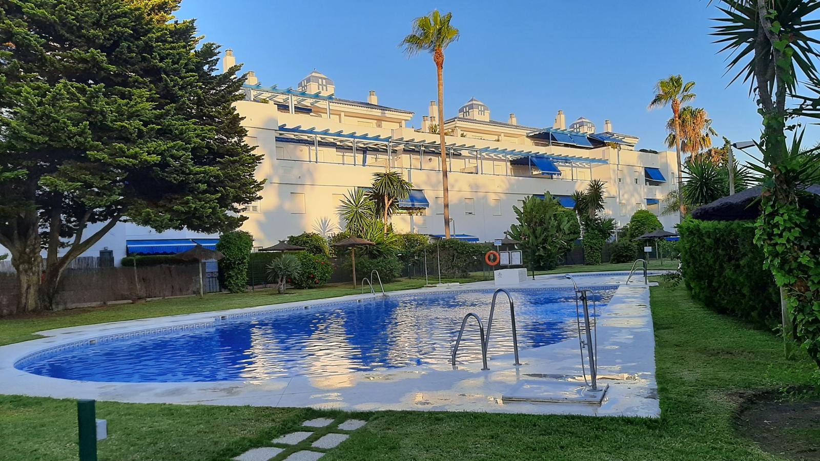 Apartamento bajo con jardín. Consta de 3 dormitorios, principal con cama de matrimonio y baño incorporado, dos dormitorios con dos camas cada uno , salón-comedor (no tiene sofá cama) cocina equipada: lavadora, lavavajillas, cocina, frigorífico, microondas y todos los pequeños electrodomésticos., televisión, 2º baño con ducha, aire acondicionado, plaza de garaje subterránea. |