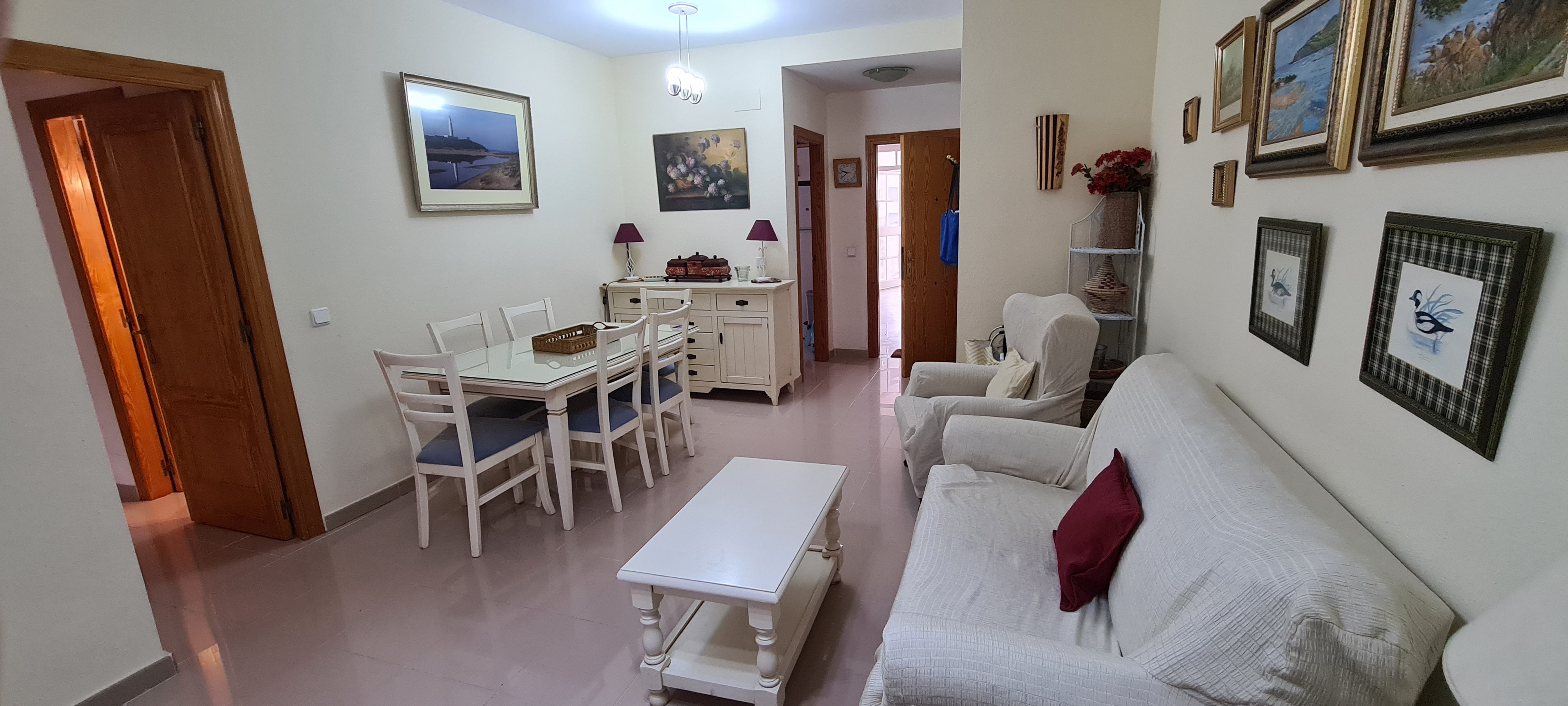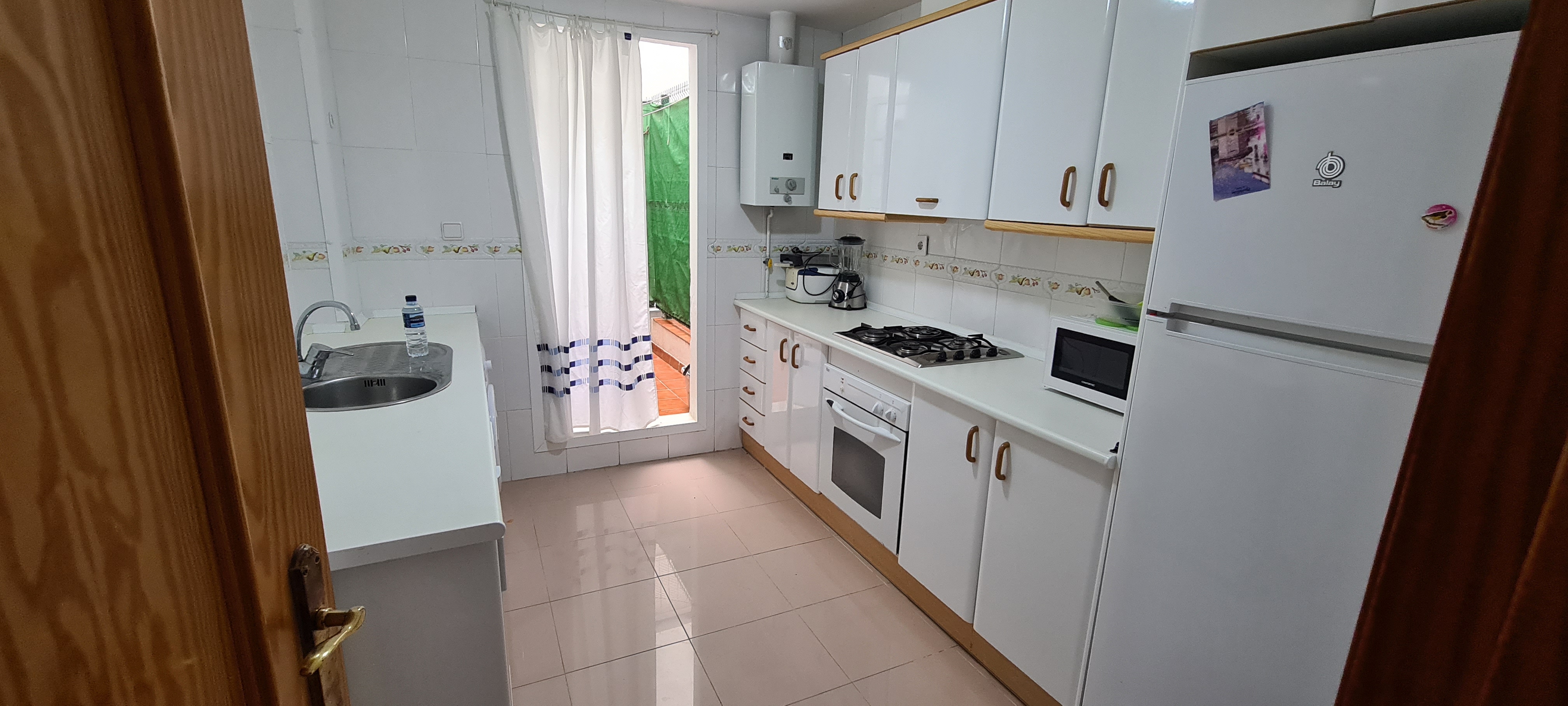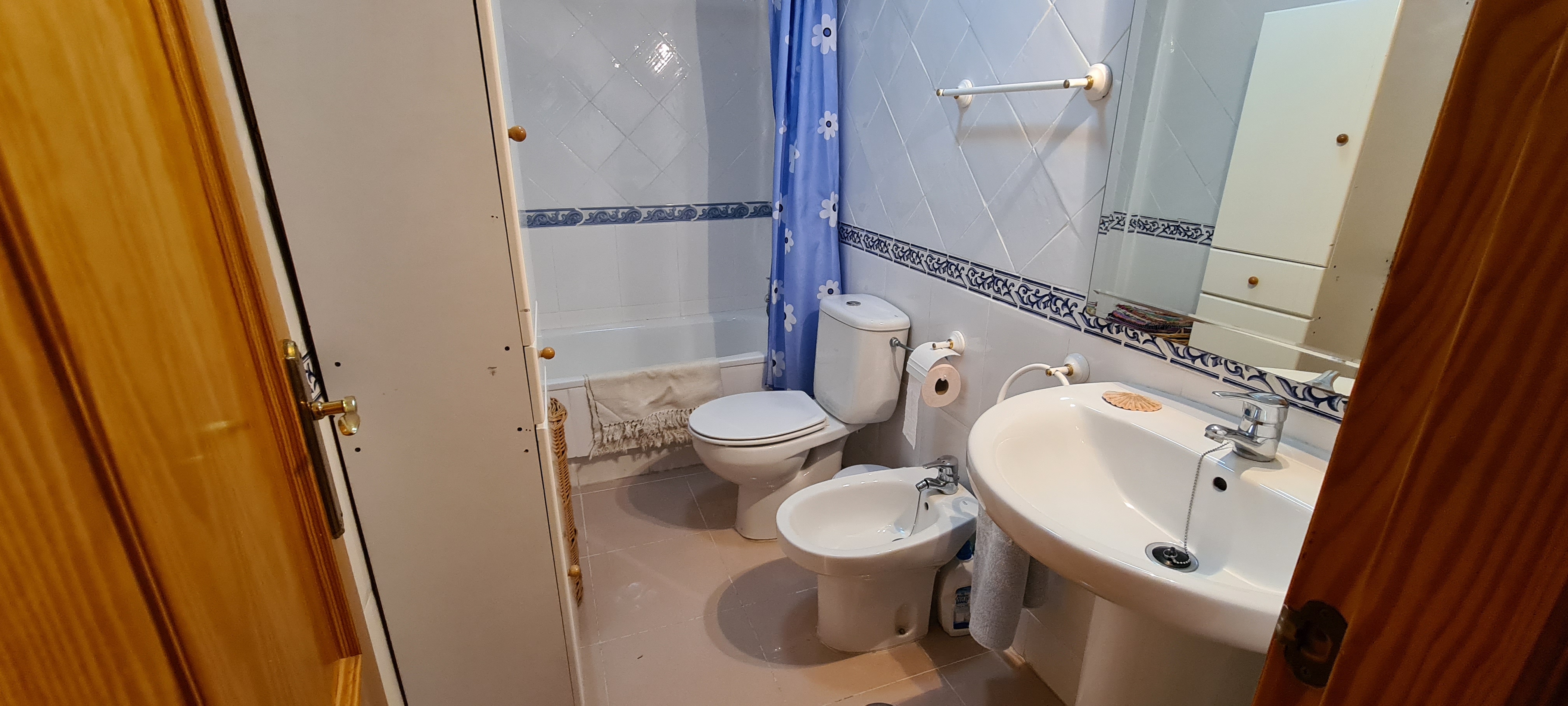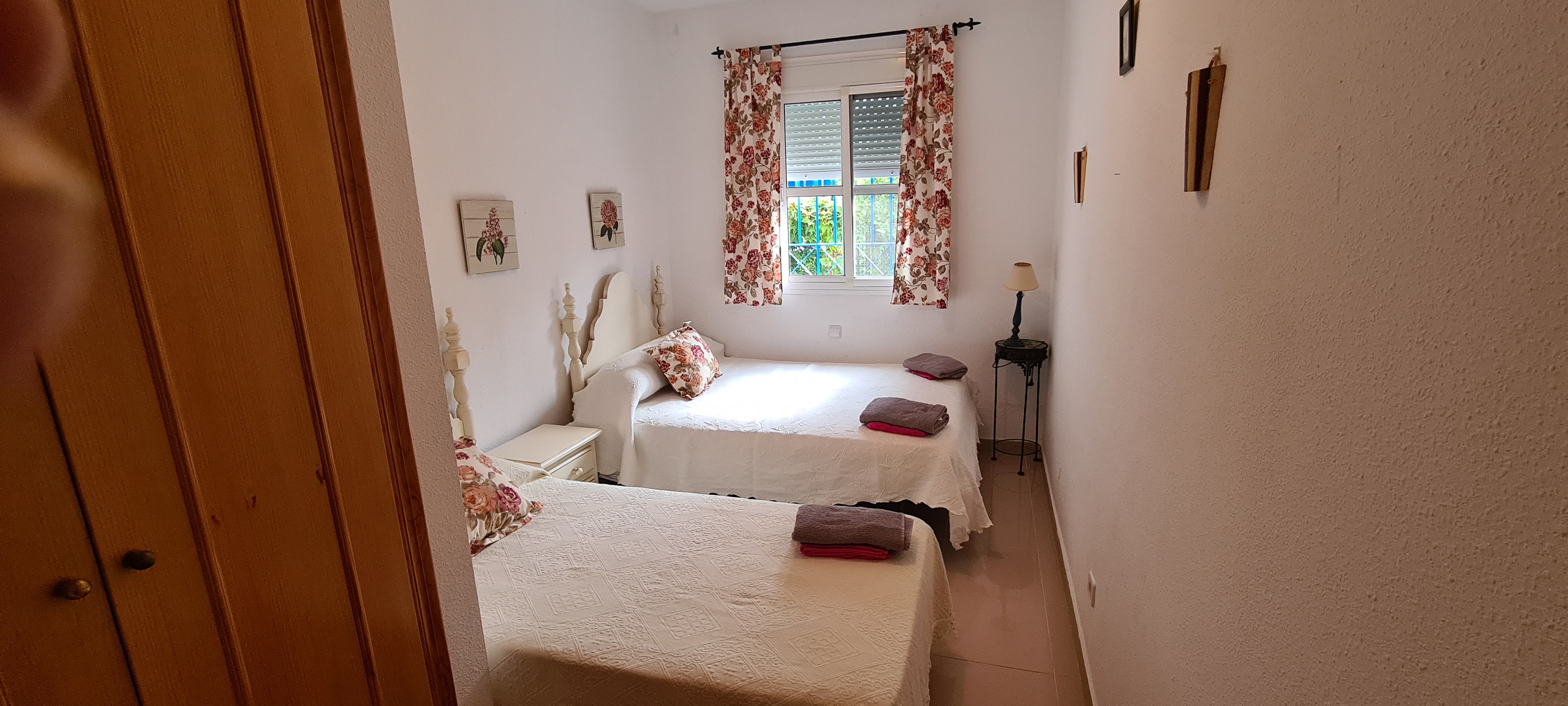 Apartamento bajo con jardín. Consta de 3 dormitorios, principal con cama de matrimonio y baño incorporado, dos dormitorios con dos camas cada uno , salón-comedor (no tiene sofá cama) cocina equipada: lavadora, lavavajillas, cocina, frigorífico, microondas y todos los pequeños electrodomésticos., televisión, 2º baño con ducha, aire acondicionado, plaza de garaje subterránea. |