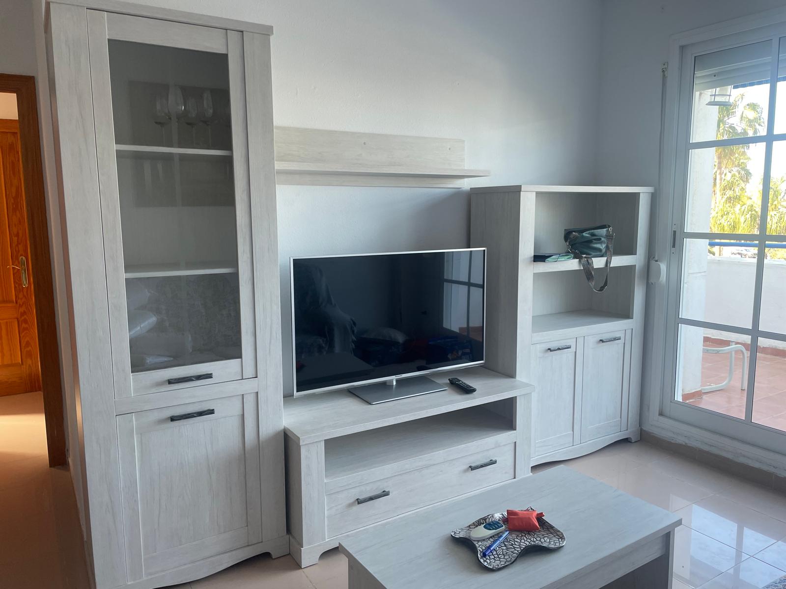 Apartamento en segunda planta con terraza de 22 m2 hacia la piscina de dos dormitorios. Consta de dormitorio con cama de matrimonio, dormitorio con dos literas (4 camas), salon-comedor con television ,dos baos, cocina con lavadora, lavavajillas, frigorifico combi, horno, microondas, cocina induccion, ...., terraza hacia la piscina con mobiliario y toldos, aire acondicionado, plaza de garaje. |